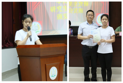獲獎代表朱夢嬌同學(xué)發(fā)言,向華南生物表示敬意及感謝,承諾以后更加努力學(xué)習(xí),時(shí)刻鞭策自己,以取得更加優(yōu)異的成績并投桃報(bào)李。