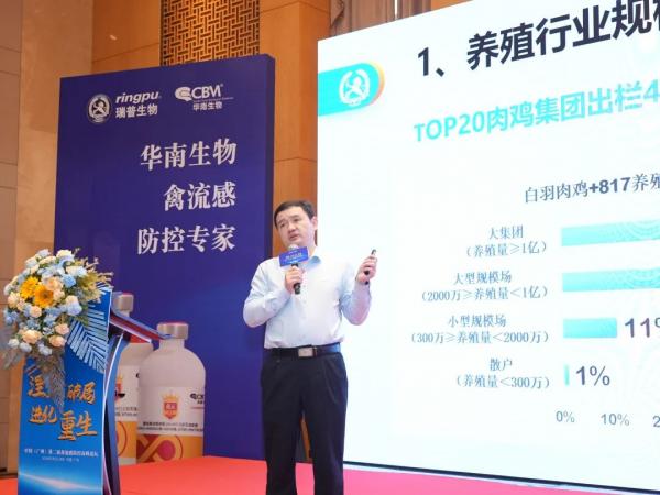 羅開健以華南農大獸醫學院禽病研究團隊一脈相承、薪火相傳的故事為切入點,詳細介紹了華南生物成立初衷與發展歷程。隨后,他就華南生物“禽元”疫苗產品在種毒構建核心技術研發團隊等產品核心優勢作重點介紹。